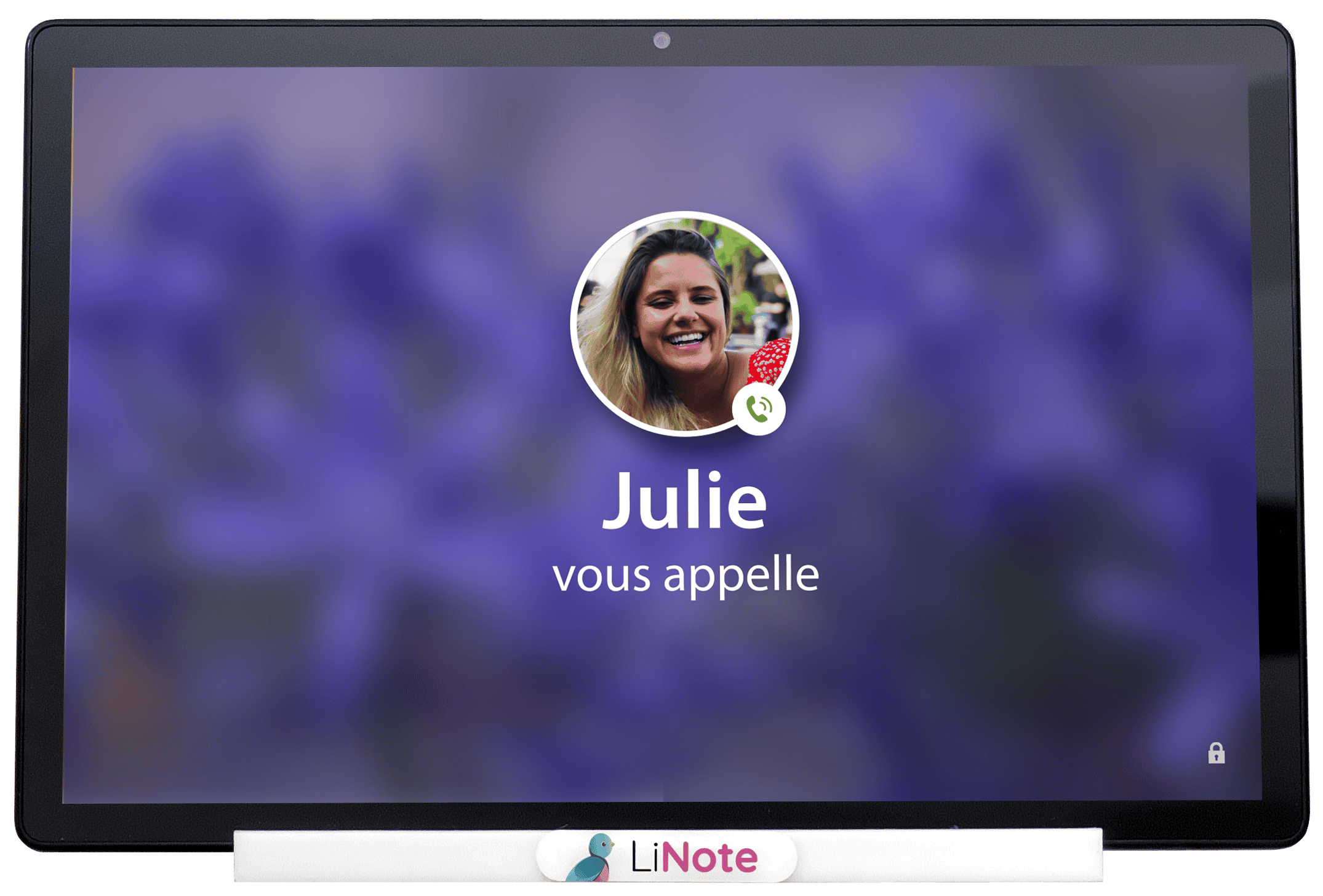 LiNote est une tablette pensée pour les personnes âgées de 80 ans et plus qui n’interagissent pas avec un écran. Pour les photos, le fonctionnement est identique à un cadre connecté : la famille envoie depuis l’application LiNote (iOS, Android) ou le site connect.linote.fr, et les photos défilent automatiquement en diaporama sur la tablette posée dans la pièce de vie.