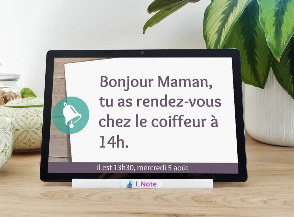 Grâce à LiNote, votre parent ne risquera plus de manquer l’heure pour partir à un rendez-vous. Vous pourrez lui programmer des messages de rappel à distance pour que LiNote lui rappelle vocalement certaines informations importantes. Par exemple, si votre proche a un rendez-vous chez le coiffeur à 14h, vous pourrez programmer un rappel vocal à 13h30. De cette façon, il saura qu’il est l’heure de se préparer pour s’y rendre.